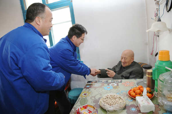 1月18日,公司總經(jīng)理、黨委副書記李臟仁,紀(jì)委書記、工會(huì)主席侯鴻飛前往社區(qū)代表公司看望慰問了省部級勞模、退休老領(lǐng)導(dǎo)、老紅軍遺屬、困難職工,給他們送去了慰問金。