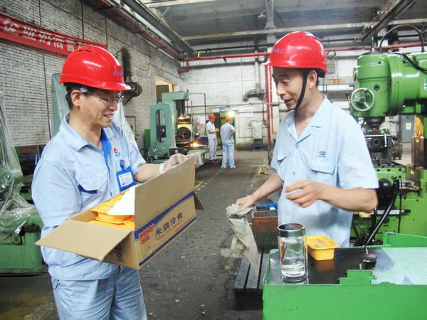 6月26日下午,公司紀(jì)委書記、工會(huì)主席侯鴻飛帶領(lǐng)黨群各部門負(fù)責(zé)人及部分分工會(huì)主席到機(jī)加分廠、裝配試驗(yàn)廠、鑄造事業(yè)部等生產(chǎn)現(xiàn)場(chǎng),為一線職工送去冷飲。6月27日,公司工會(huì)為全體職工發(fā)放了毛巾和肥皂。