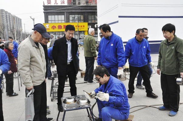 此次學(xué)雷鋒活動主要涉及錫焊、氣焊、氬弧焊及鋁制品的鉚接等作業(yè)。由于前期進(jìn)行了廣泛宣傳,社區(qū)職工家屬一大早就帶著家里需要修補(bǔ)的生活用品來到陜柴廣場。