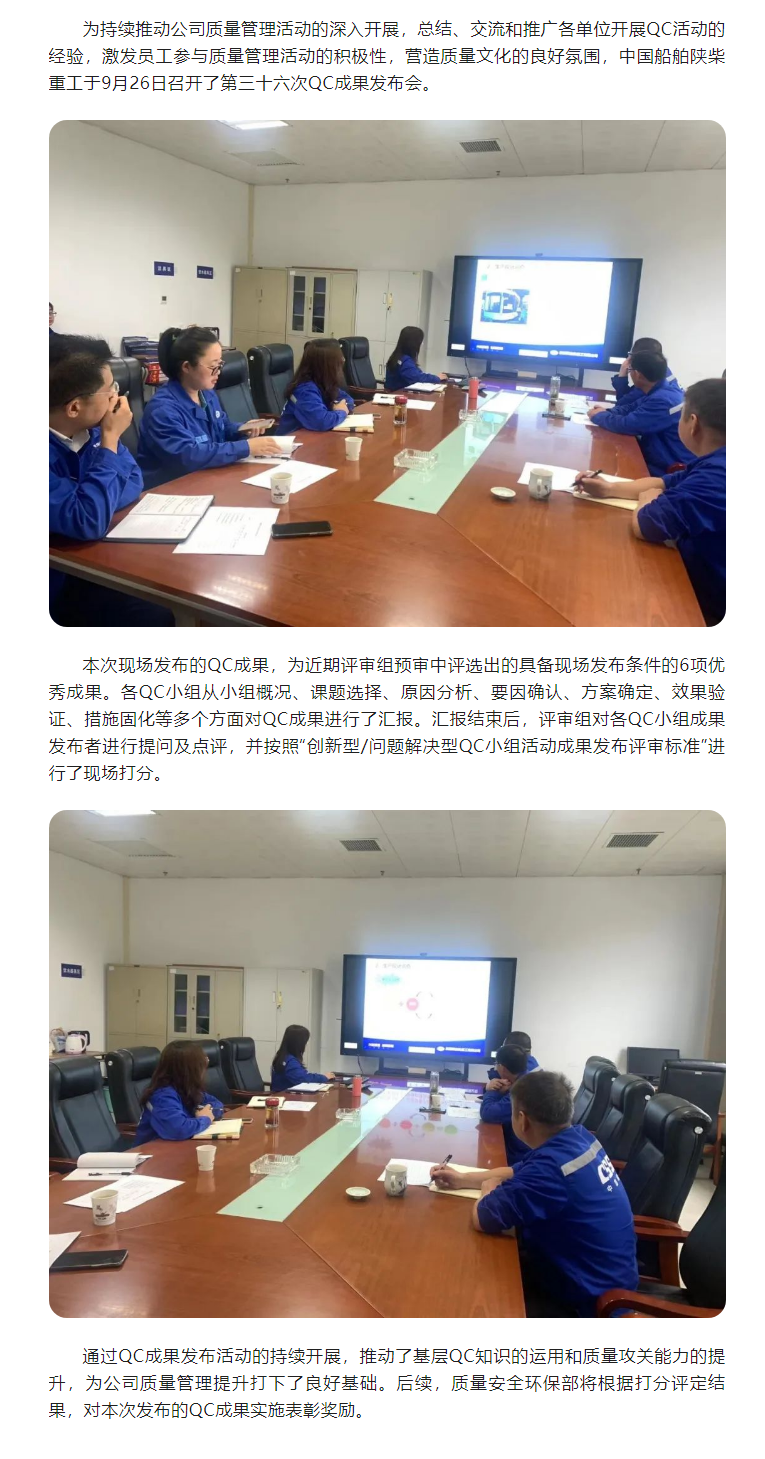 中國船舶陜柴重工召開第三十六次QC成果發(fā)布會(huì)