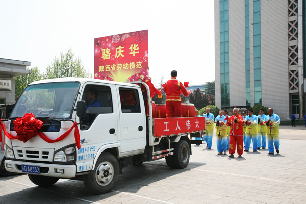 4月27日上午11點45分,信息樓前鑼鼓喧天,公司在這里舉行隆重儀式,歡送2016年度陜西省勞動模范駱慶華赴西安參加勞模表彰大會。這也是自2011年以來,時隔五年,公司員工再次被評為省級勞模。