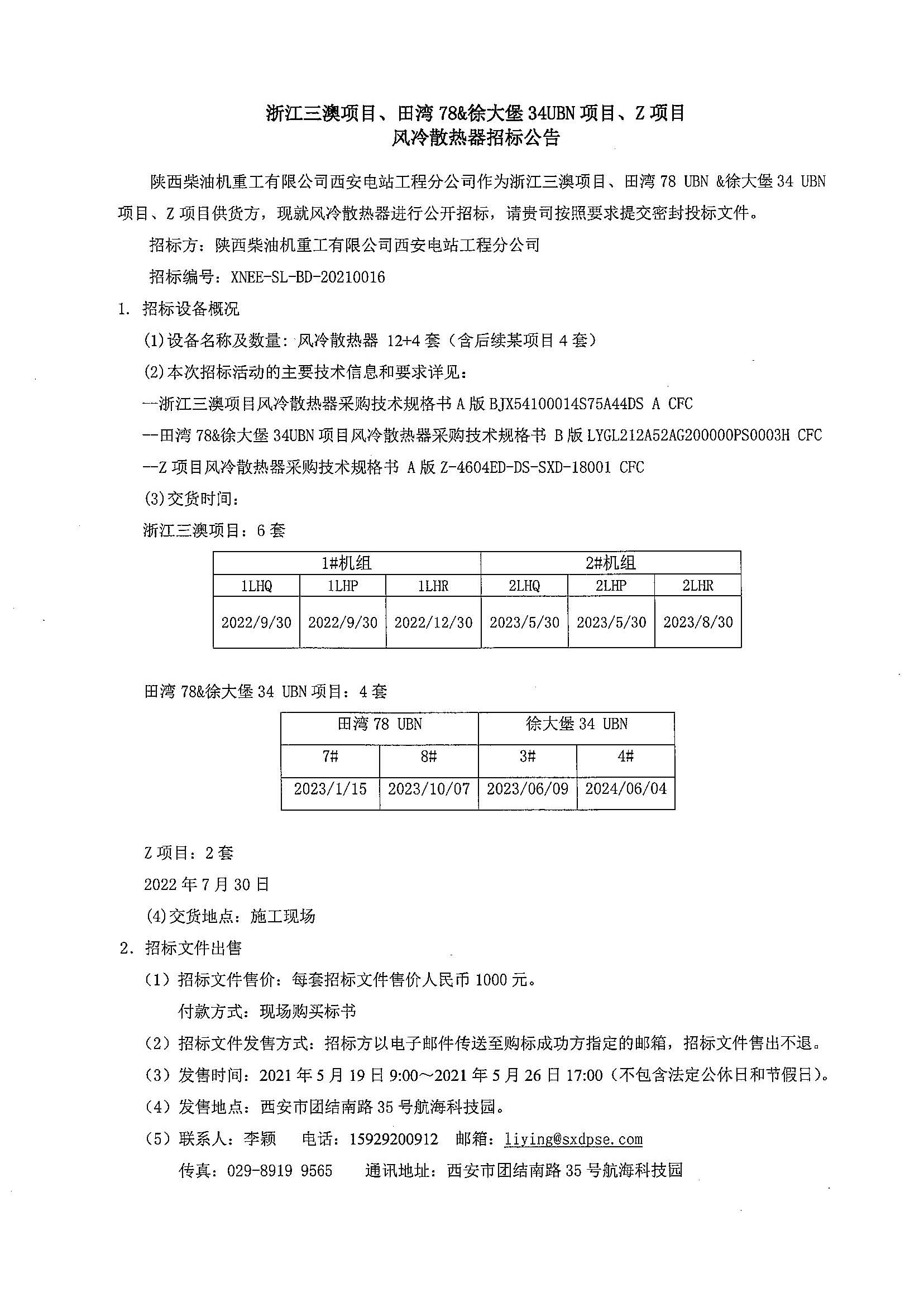 浙江三澳項(xiàng)目、田灣78&徐大堡34UBN項(xiàng)目、Z項(xiàng)目風(fēng)冷散熱器招標(biāo)公告