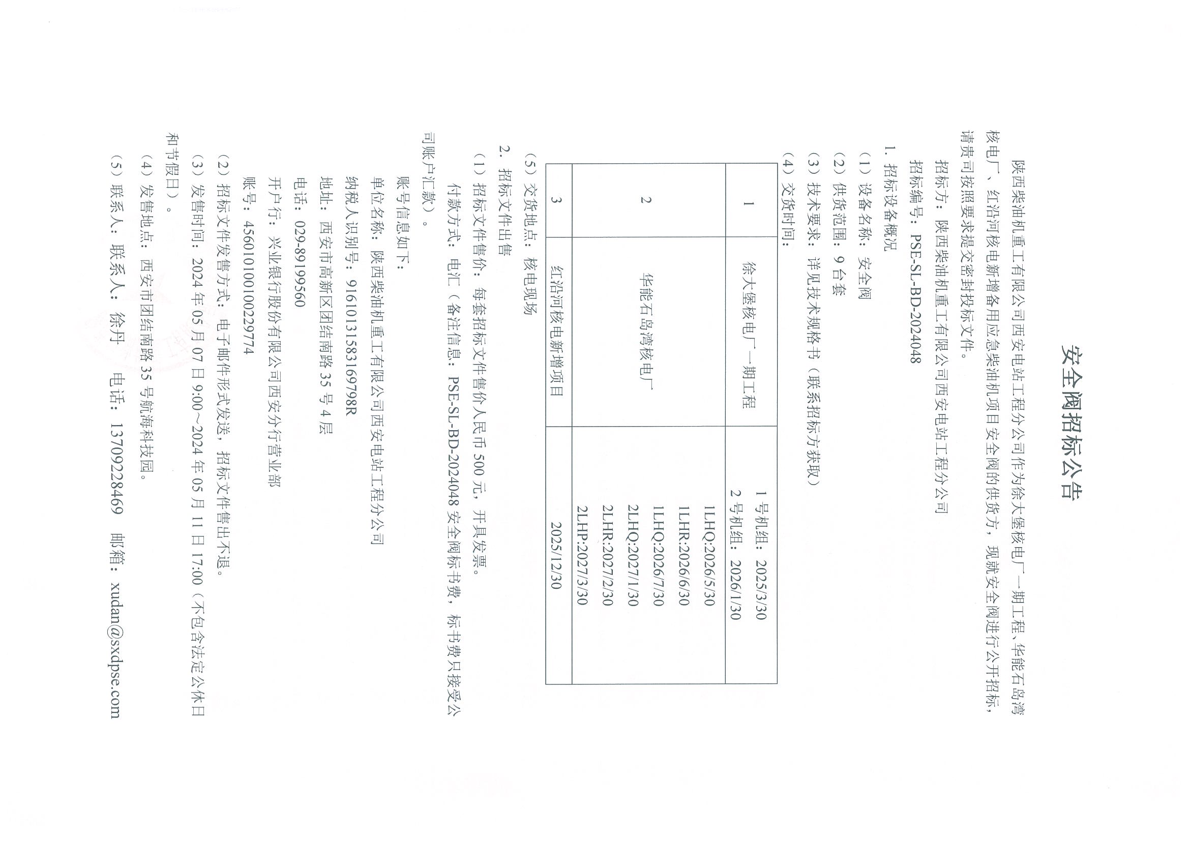 安全閥招標(biāo)公告