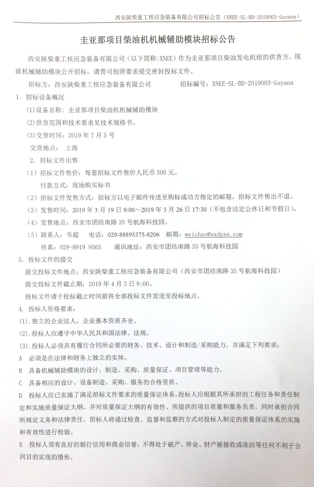 機(jī)械輔助模塊招標(biāo)公告