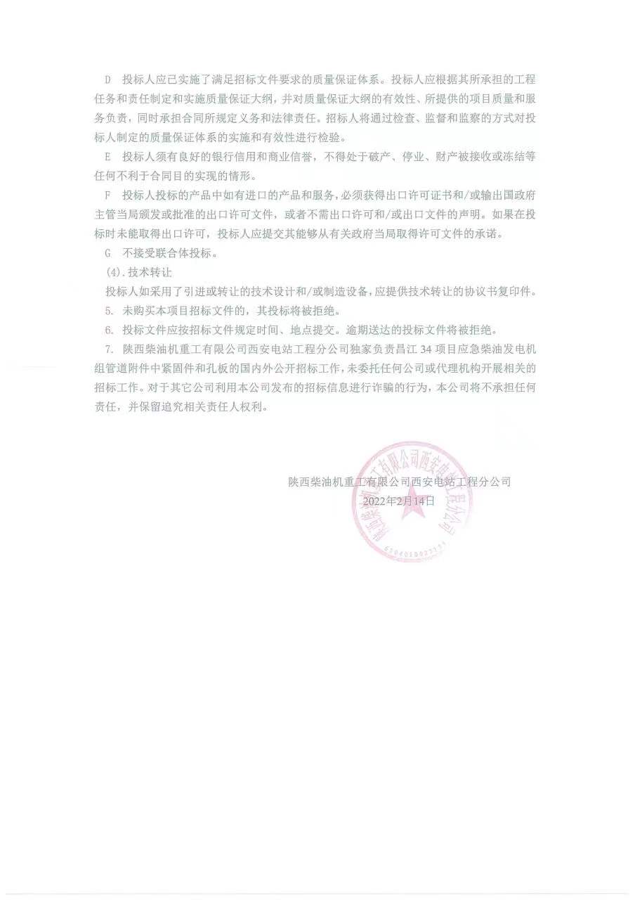 昌江34緊固件和孔板招標(biāo)公告