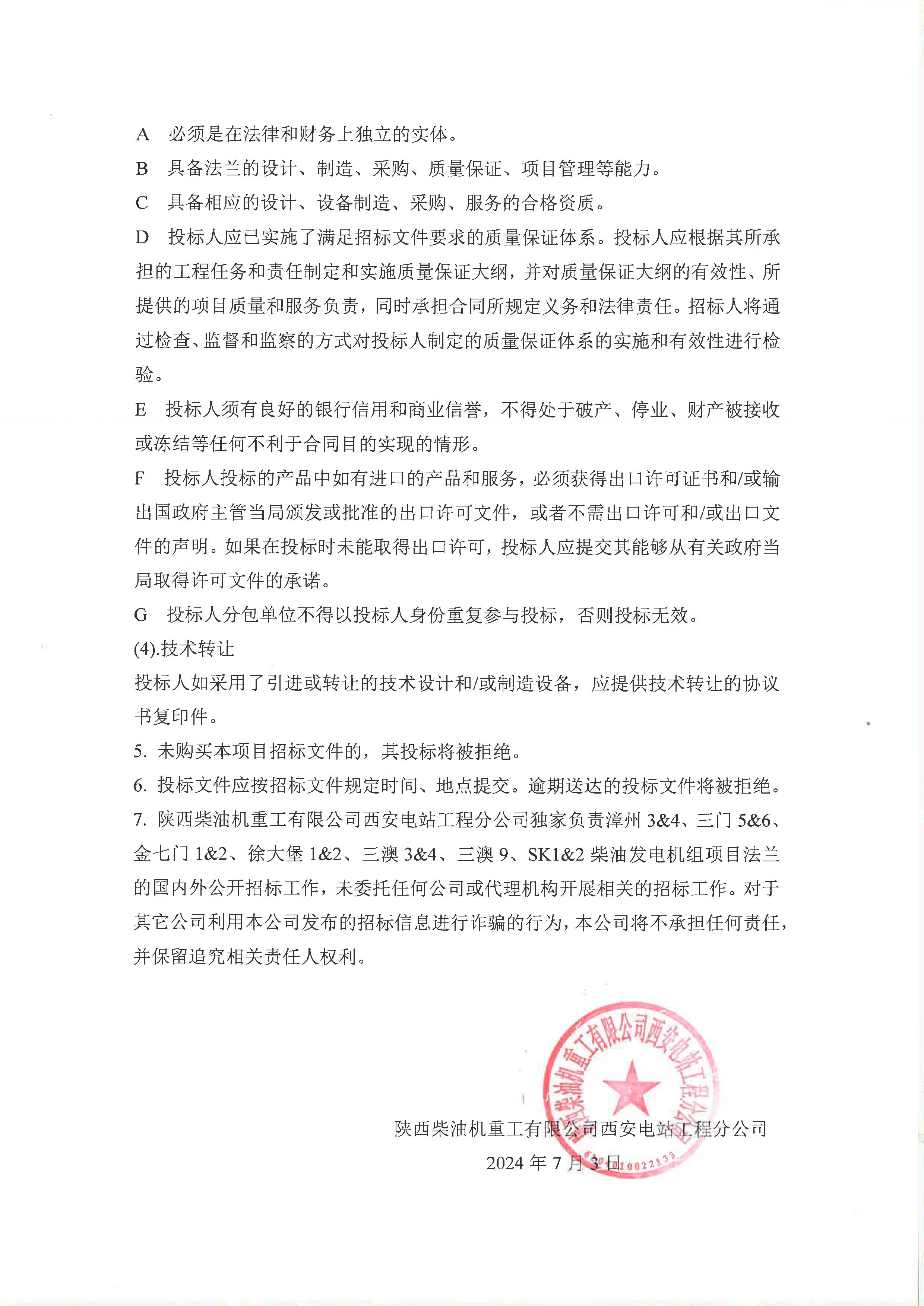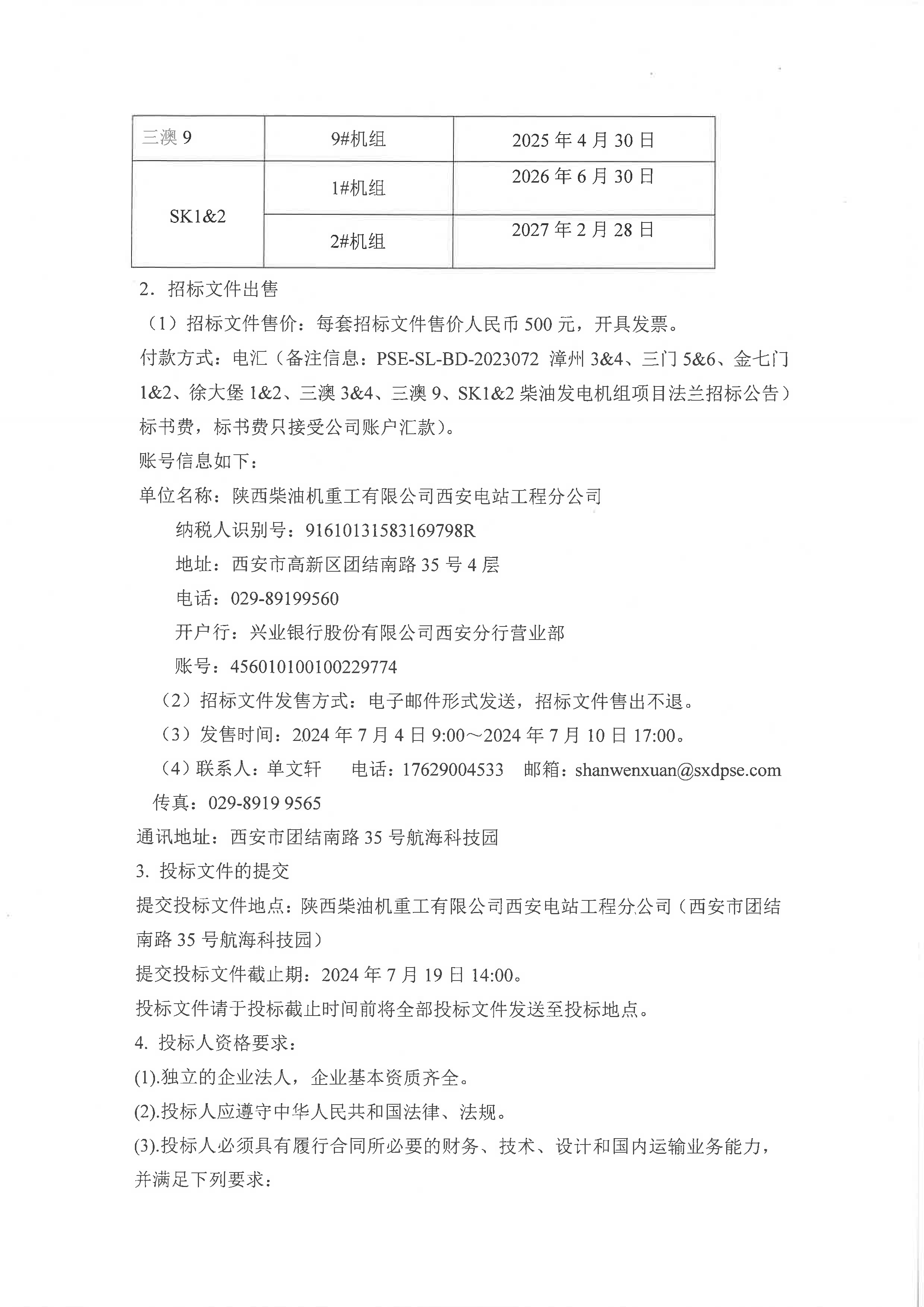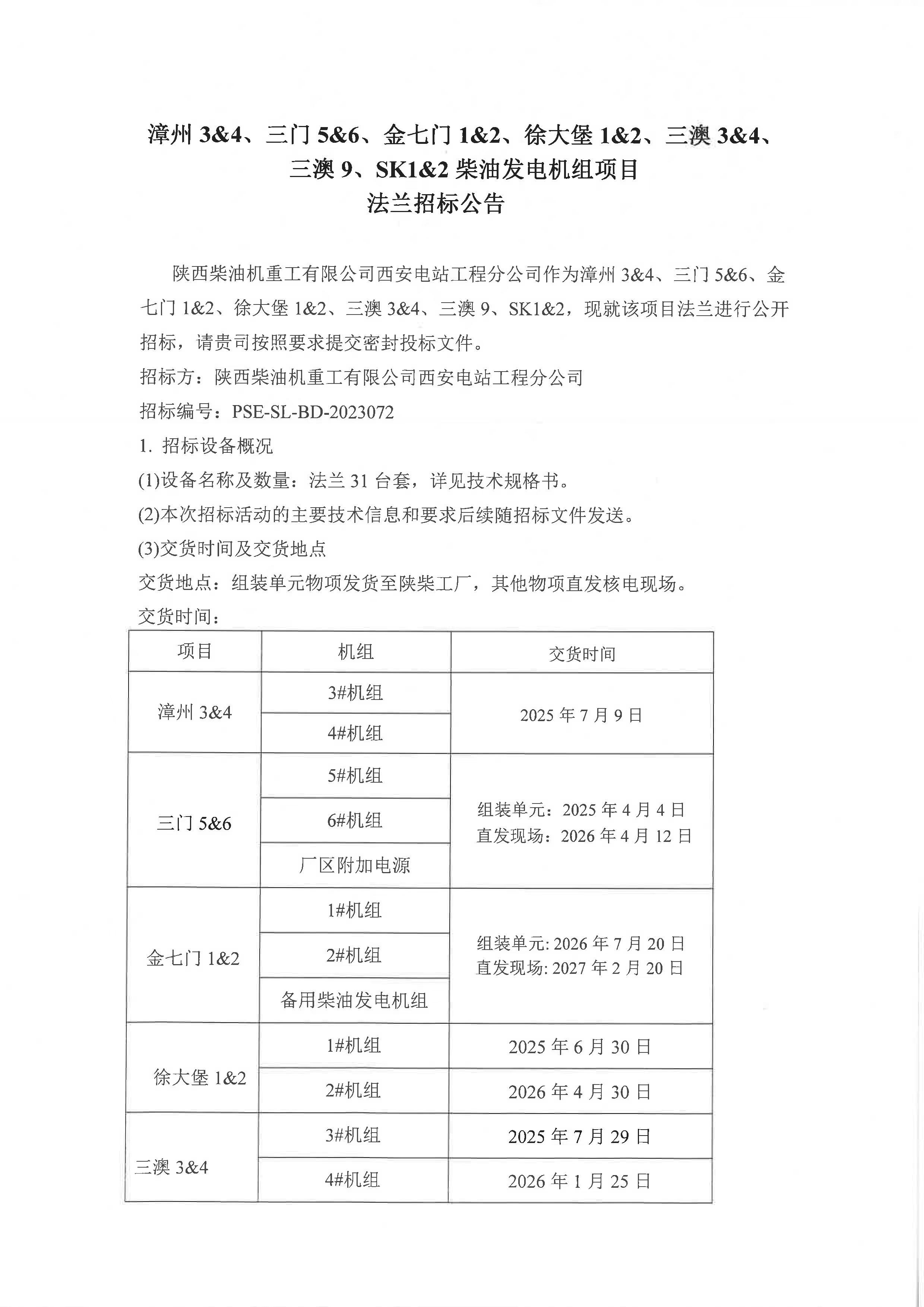 漳州3&4、三門5&6、金七門1&2、徐大堡1&2、三澳3&4、三澳9、SK1&2柴油發(fā)電機(jī)組項(xiàng)目法蘭招標(biāo)公告