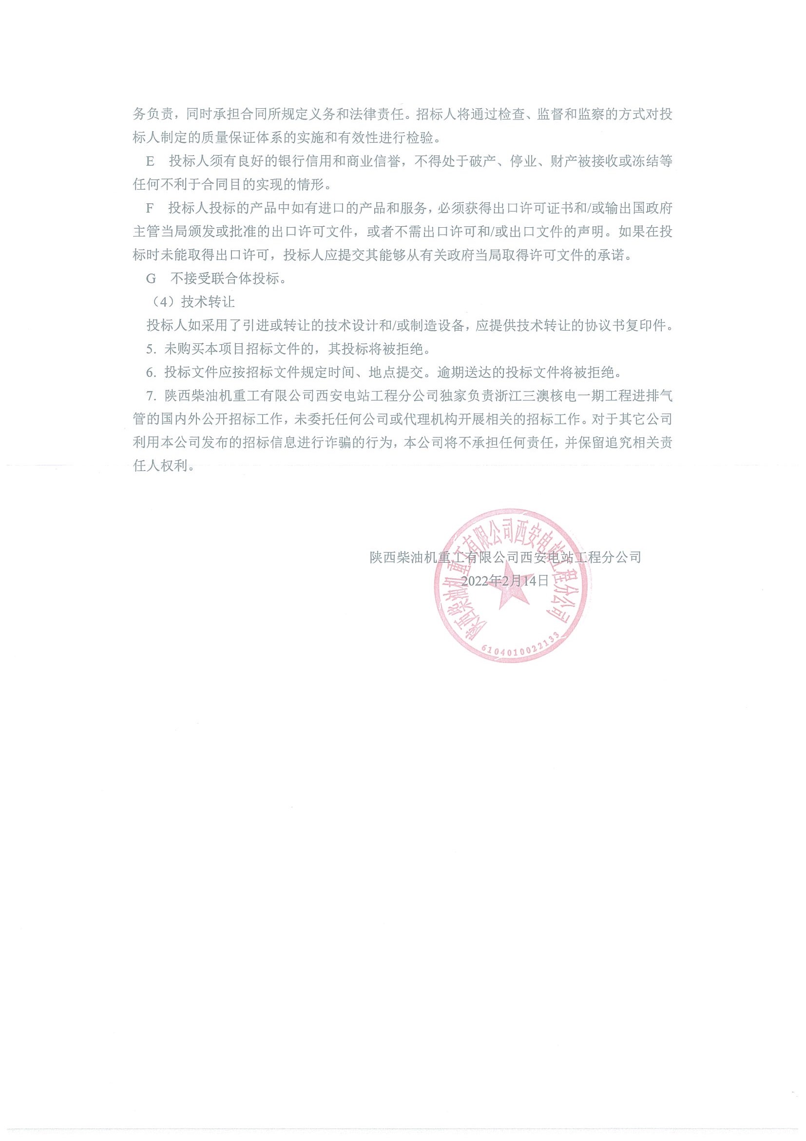 浙江三澳核電一期工程進(jìn)排氣管招標(biāo)公告