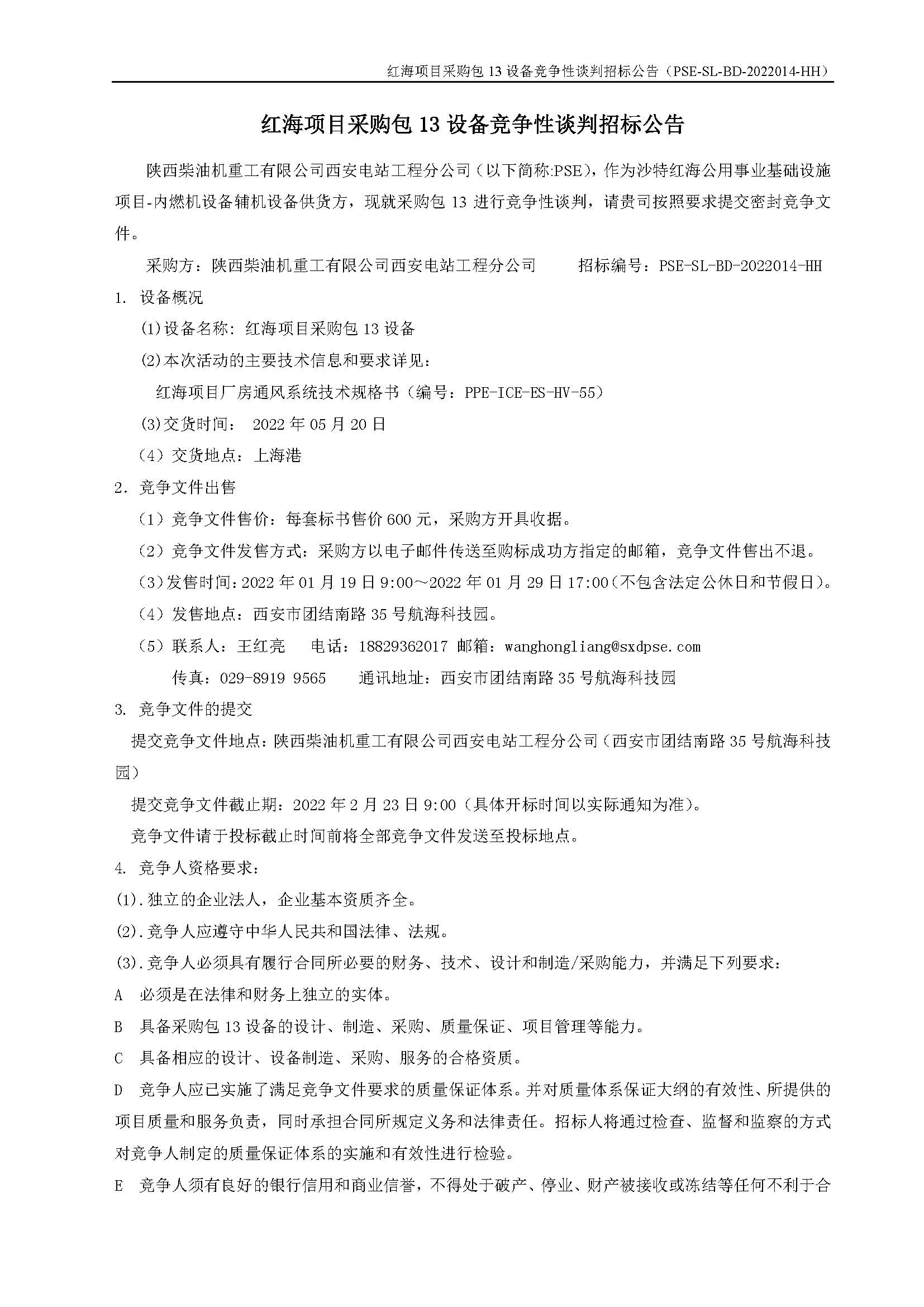 紅海項(xiàng)目采購(gòu)包13設(shè)備競(jìng)爭(zhēng)性談判招標(biāo)公告