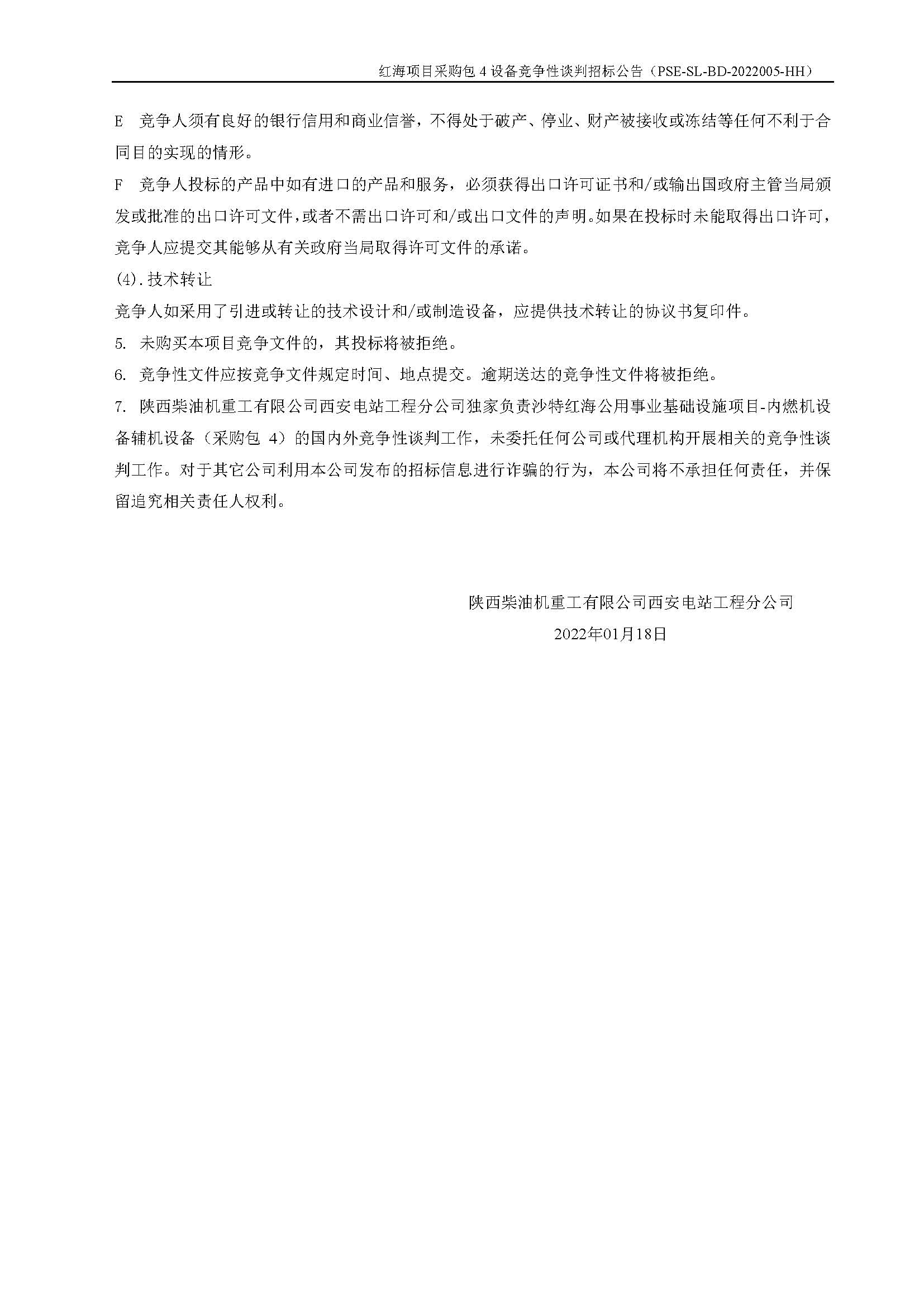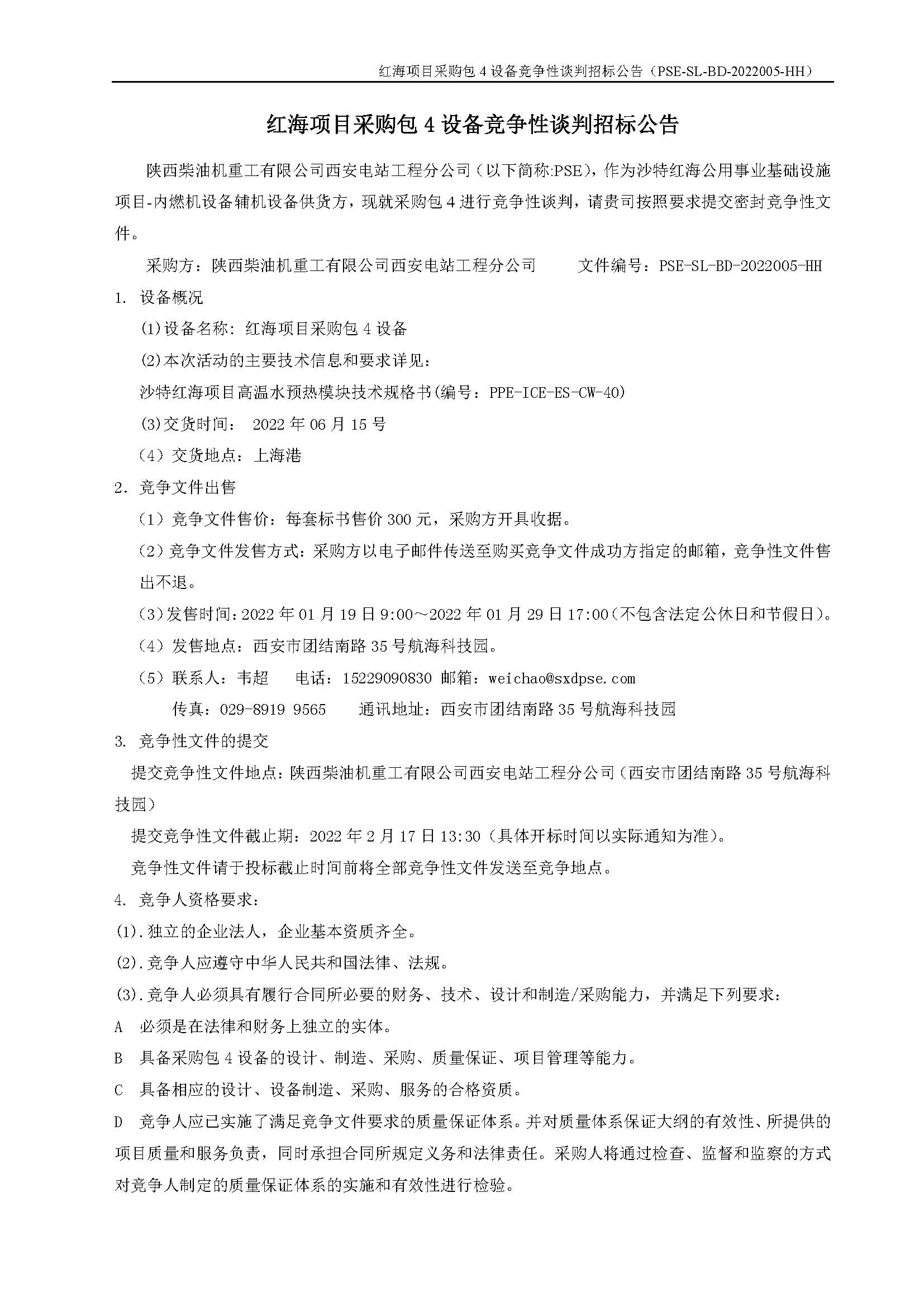 紅海項目采購包4設備競爭性談判招標公告